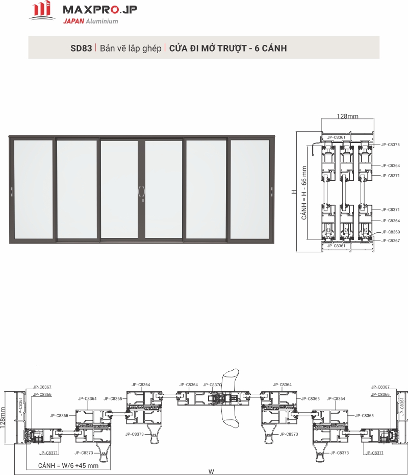 Cửa đi cửa số hệ SD83 cửa đi mở trượt
